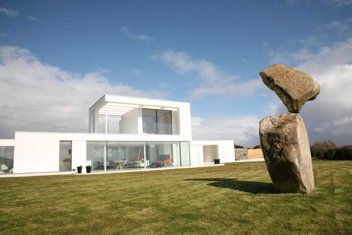 Using carefully selected weathered stones, he creates sculptures that range in size from meditative desktop balances to monumental 6m installations.