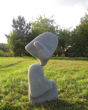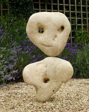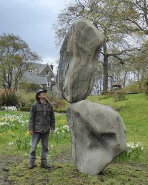 Using carefully selected weathered stones, he creates sculptures that range in size from meditative desktop balances to monumental 6m installations.