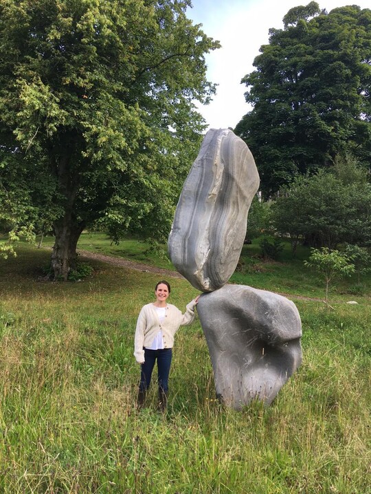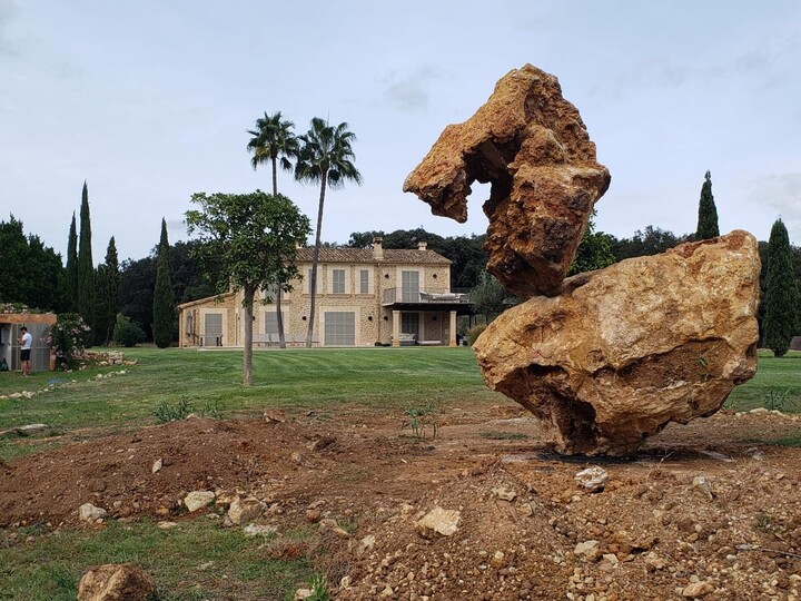 My monumental sculptures are created using a large crane to reposition the balancing stone. By re-stropping the stone (moving the supporting straps) it is possible to change its orientation over the point of contact until balance is achieved.
